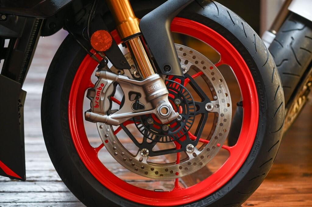 "The Tuono V4 1100 Factory is basically an Aprilia RSV4 fitted with motocross bars and pumped full of midrange. It howls like MotoGP missile and goes like a superbike, but with its upright stance and tourer-like wind protection you don’t have to suffer with crushed wrists and a sore back for your speed. Put simply, it’s the best road-going sportsbike money can buy. The Tuono ticks every must-have box for the discerning thrill seeker: a brain-fizzing 1077cc, 173bhp V4 motor blessed by the gods of grunt and power and an exquisite polished aluminium, three-times WSB championship-winning chassis.