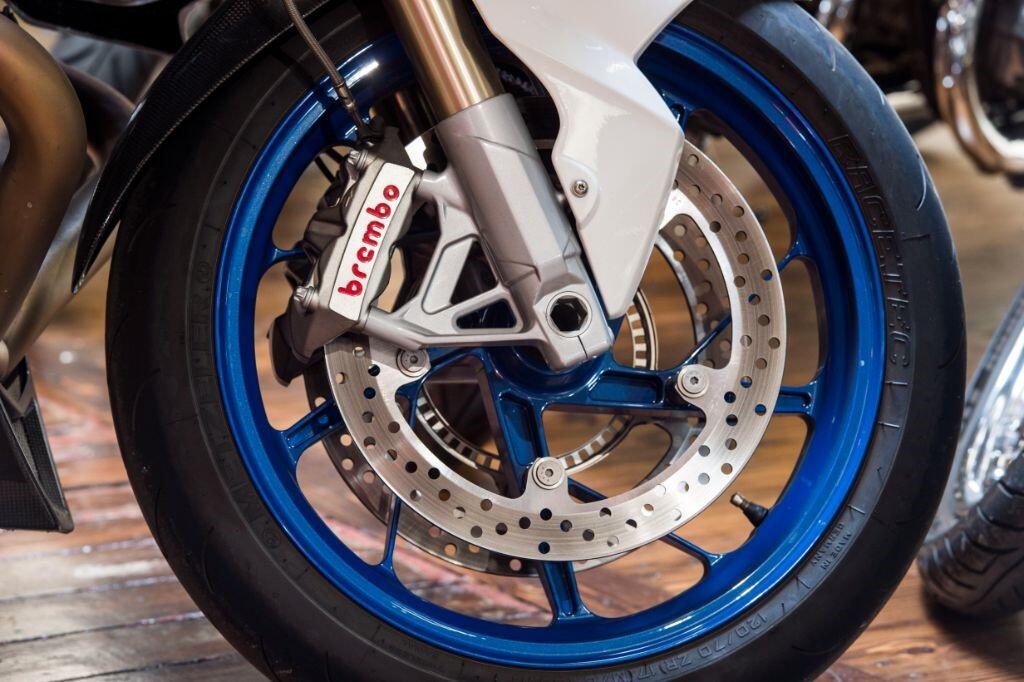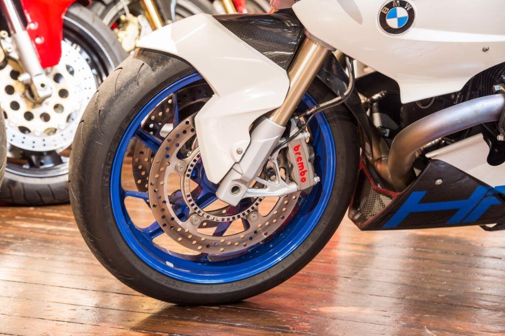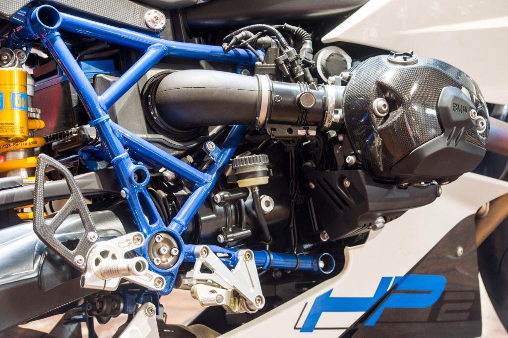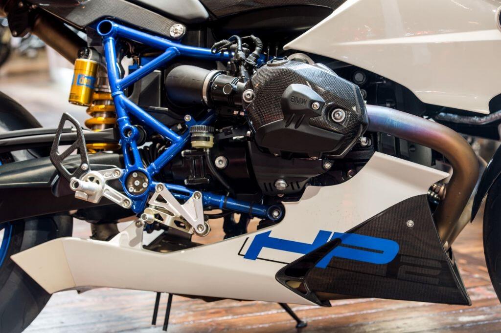 The HP2 Sport is fitted as standard with a quick shifter, Ohlins suspension and many carbon fibre body parts. Front brake calipers are Brembo "race-spec" Monobloc, wheels are lightweight forged aluminium, and tyres are Metzeler race compound items.