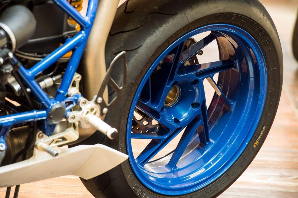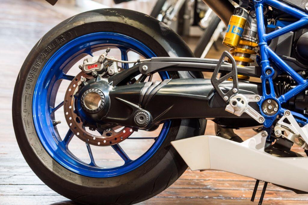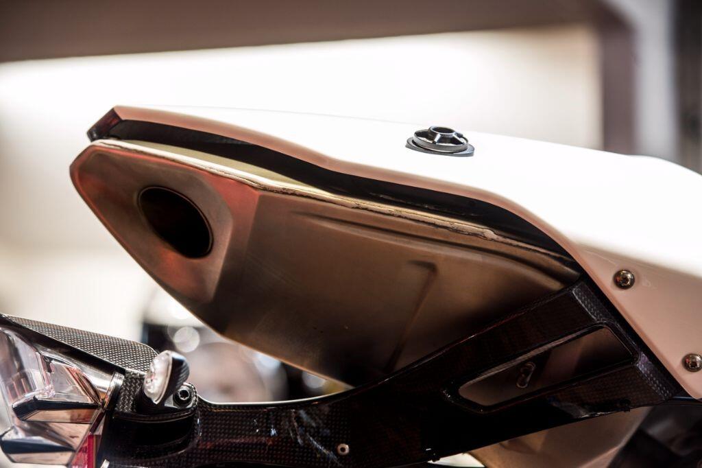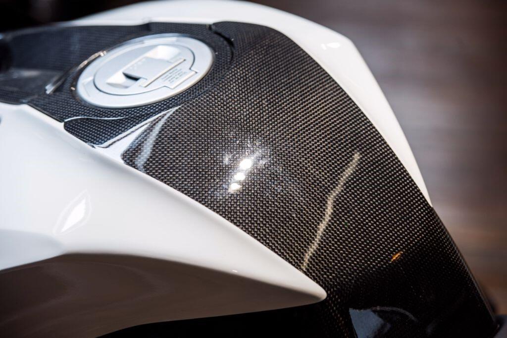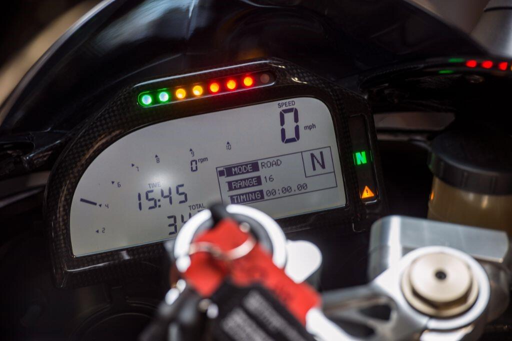The HP2 Sport is fitted as standard with a quick shifter, Ohlins suspension and many carbon fibre body parts. Front brake calipers are Brembo "race-spec" Monobloc, wheels are lightweight forged aluminium, and tyres are Metzeler race compound items.