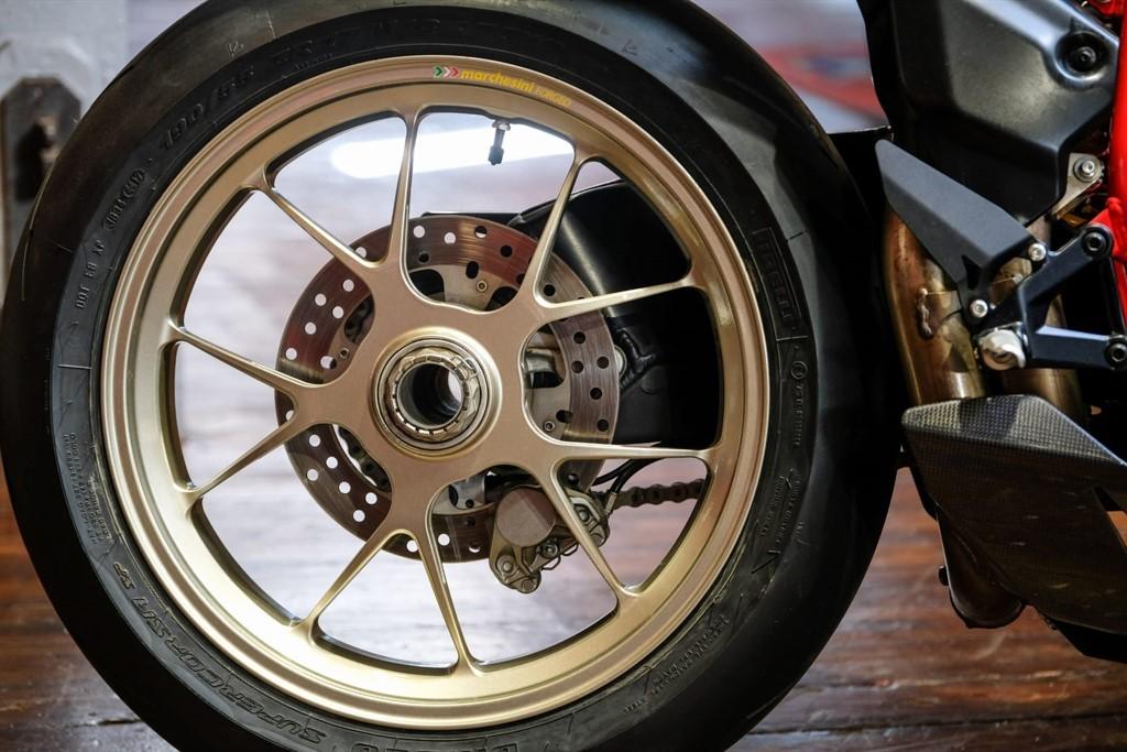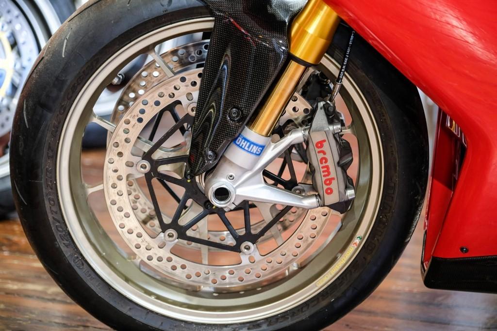 The 1098R was the last of the "proper" Ducati homologation specials being powered by the 1198 Ducati engine. These bikes produce a massive 180bhp using the race kit parts and full Termignoni exhausts , The instrumentation is a digital Moto GP derived unit and the suspension is Ohlins TTXR single rear shock with fully adjustable Ohlins to the front. The 1098R has true competition level traction control, Marelli electronic fuel injection, forged light alloy Marchesini wheels and a dry multiplate clutch. The ECU is reconfigured and mapped to suit the racing exhaust. This Ducati would take pride of place in any serious collection.