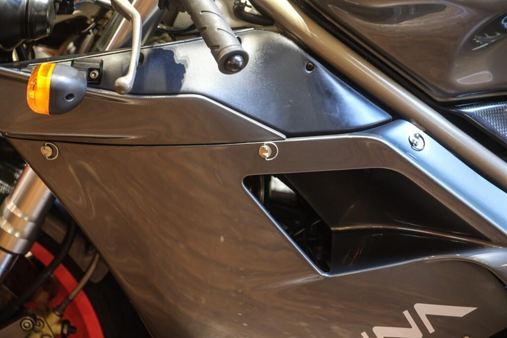 It is combination of rarity, distinctive design touches, and strong connection to Senna’s legacy that make it a stand out in Ducati’s history. Only 300 units were produced in the first series (Senna 1), followed by later editions in 1997 (MK2) and 1998 (Mk3) with slightly different colours. The Mk 1 featured a distinctive anthracite grey and matt black paint scheme with striking red wheels (colours chosen by Senna himself during collaboration with Ducati’s design team) Special “Senna” logos and graphics, Carbon-fibre front fender, chain guard, clutch cover, and exhaust heat shield — giving both weight savings and a premium look.