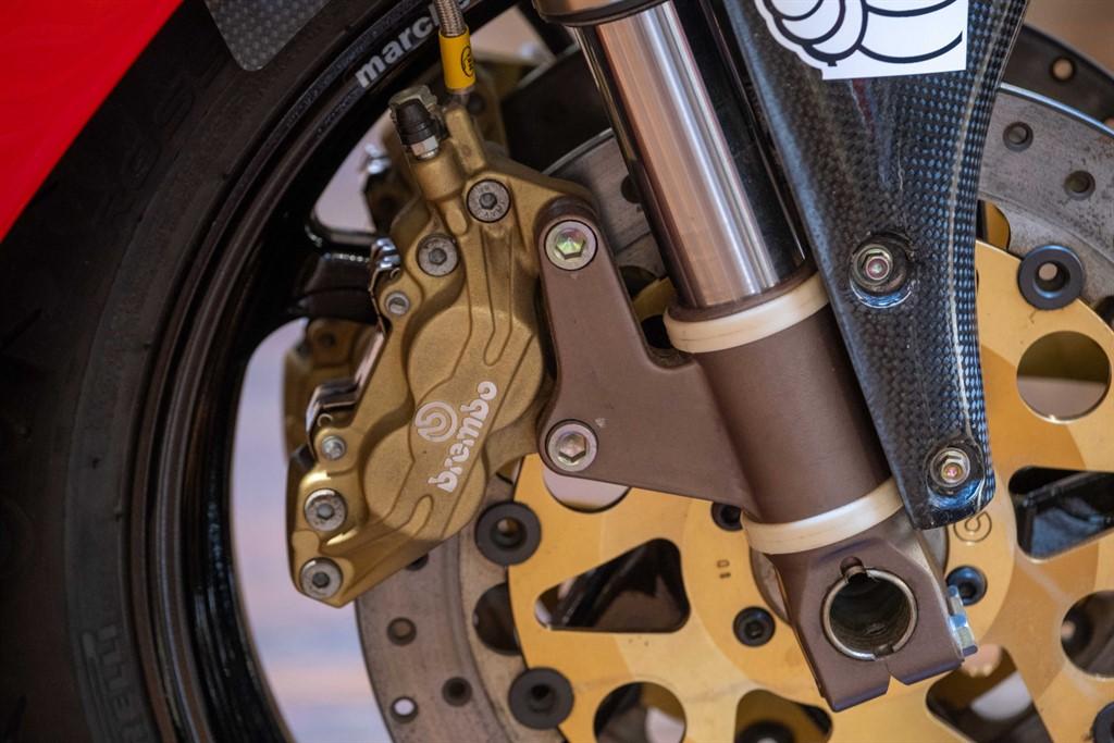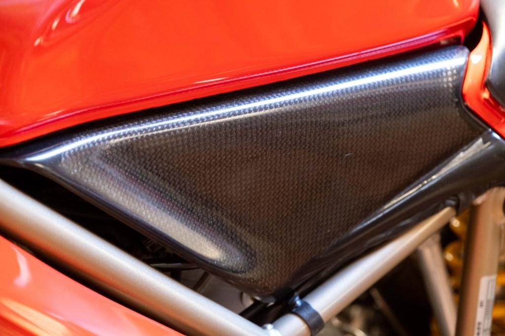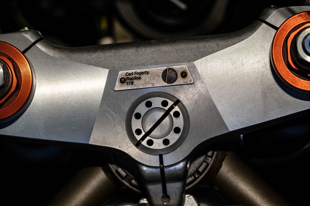 The foggy reps all came with date stamps on the fairing panels which were 1997 or 1998. All fairings have been replaced with the correct date stamped versions. Every fairing panel has been taken back to the substrate, restored and painted to perfectly match the original colour. The seat panel is an original MS production carbon fibre item as supplied when the bike was new and has also been perfectly restored.