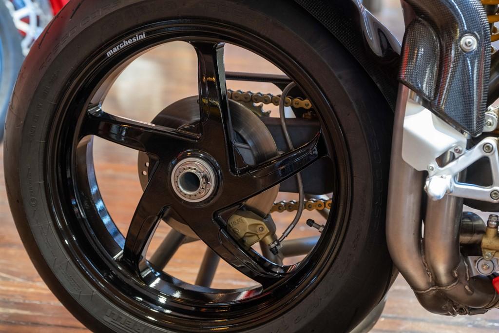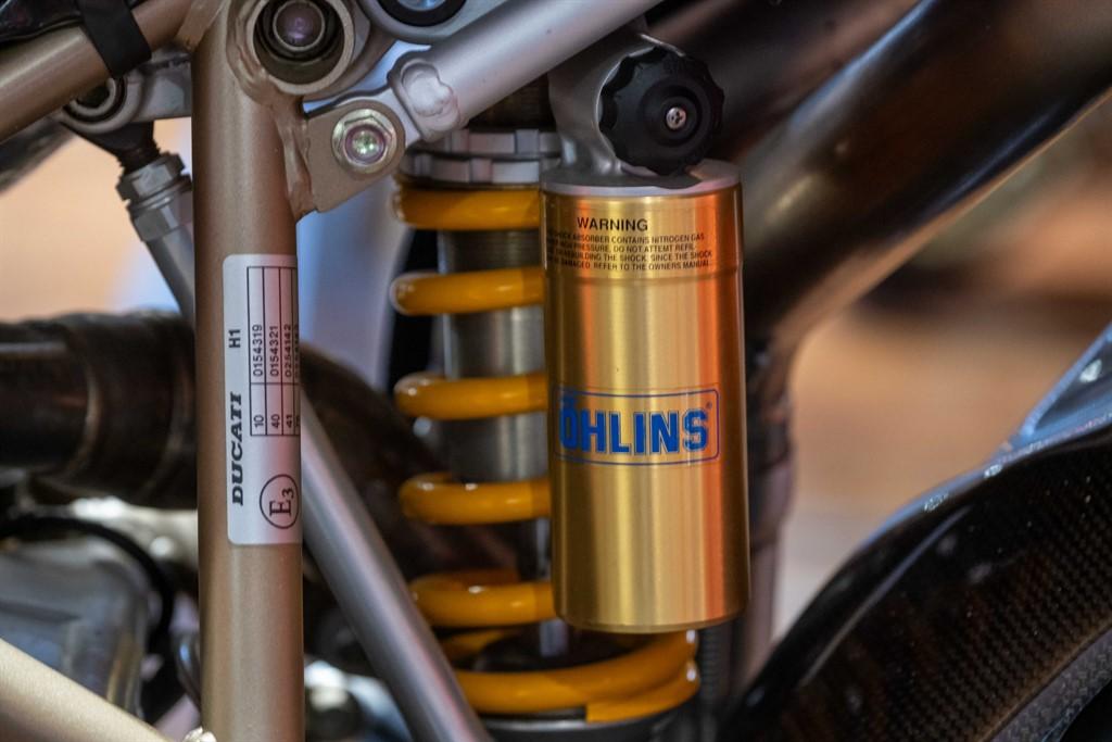 The rear Ohlins suspension unit has been removed, re-built and restored as new, swing arm renovated to as new condition.