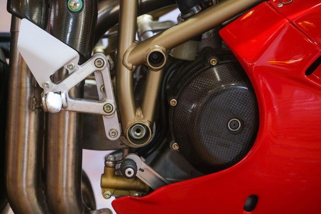 While the compression ratio was slightly reduced to 11.8:1 compared to the previous year, the bike still delivered an impressive 153 bhp at 11,000 rpm. Only 31 official customer race bikes were produced for the 1996 season. One of these, frame number ZDM916S007155, was acquired early in the year by the GSE Duckhams Ducati Racing Team for use in the British Superbike Championship (BSB) of the 96 season.
