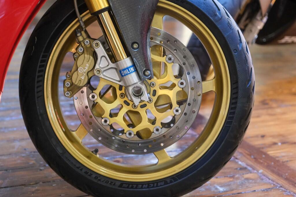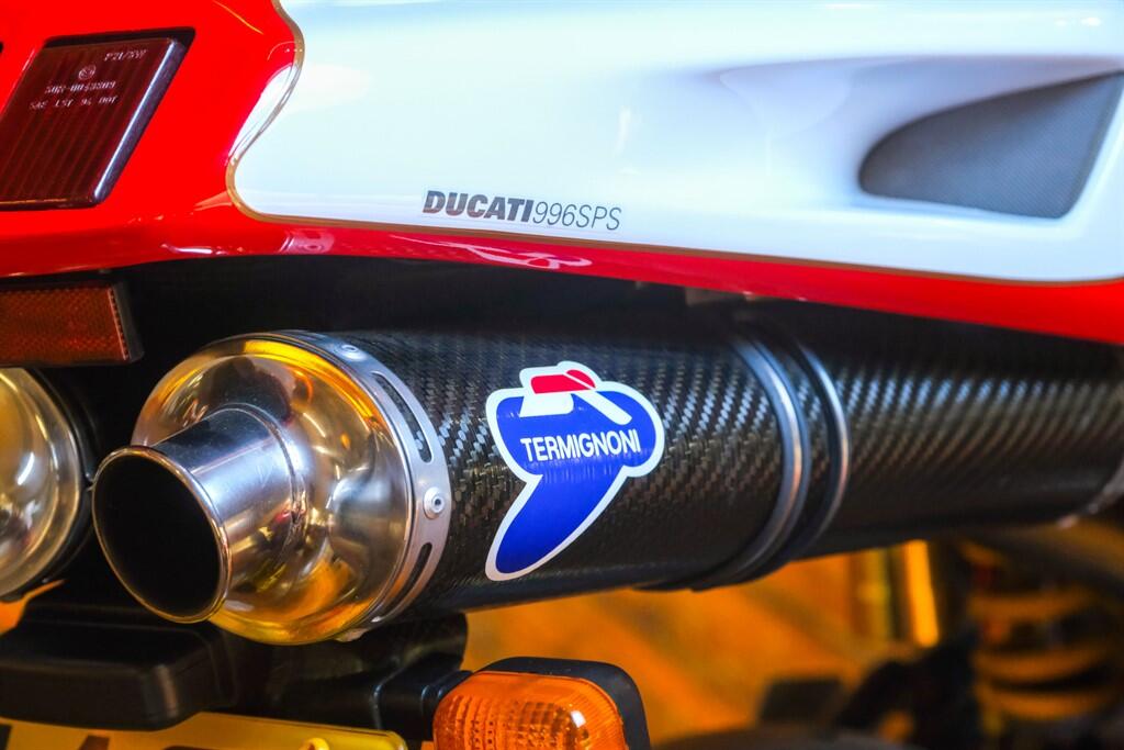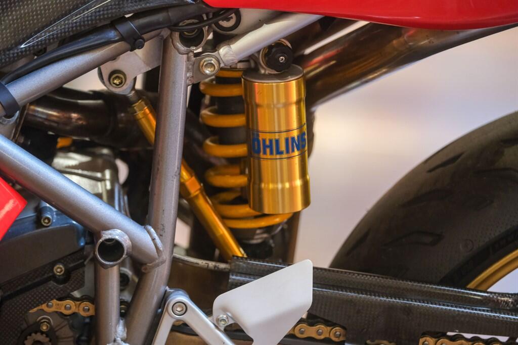 The 996SPS suffix stood for ‘Sport Production Special’. The engine was the same as the one used in the 916SPS but the weight was cut down considerably. The 996SPS produced around 124 bhp, more than the standard 996. The special SPS engine was much stronger than anything that Ducati had produced for the track. To ensure a distance was held between the standard 996 and the 996SPS Ducati designed a much higher specification chassis. The wheels were a five spoke design but were lighter than the standard three spoke design and in 1999 the rear shocks were made by high quality Swedish suspensions manufacturer, Öhlins with Showa front forks.