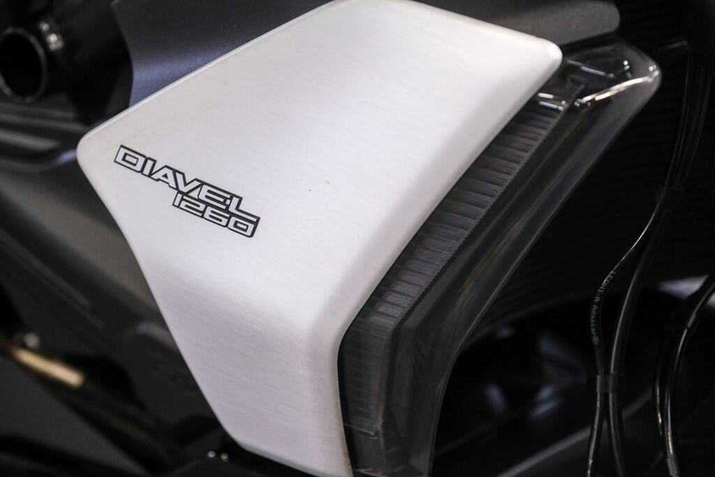 "Muscular lines and an imposing front bring out the strong and restless personality of the new Diavel, featuring a long, slender rear with a 240 mm rear wheel. The wide air inlets and the trellis frame complete the elegant picture as they support the engine, the true beating heart of this bike.