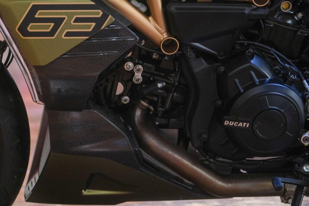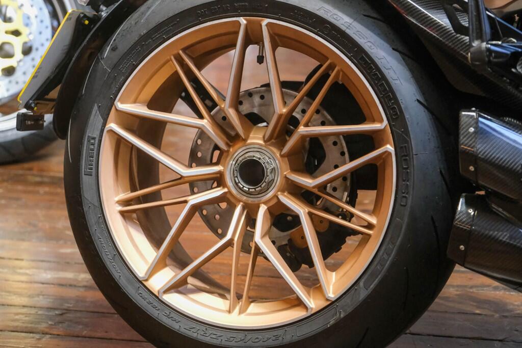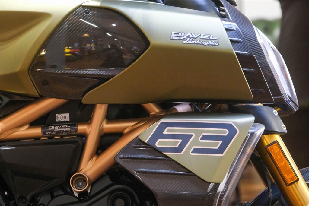 "The Ducati Diavel 1260 Lamborghini was born from the collaboration between two prestigious brands, made in a limited and numbered edition of 630 units. To carry out this project, Ducati designers chose to be inspired by the Sián FKP 37, the most prestigious car ever made by Lamborghini: available in only 63 units, each of which personalized to specific customer requests, it is a masterpiece of exclusivity, design and innovation. A motorcycle made in a limited and numbered edition of 630 units and destined to win the hearts of motorcyclists and collectors from all over the world. Unconventional, unique, unmistakable. The Diavel is the model of the Ducati range able to amaze enthusiasts with its personality, with the road behaviour of a naked sport thanks to a thoroughbred sports engine and with its design, which has made it an icon of style"