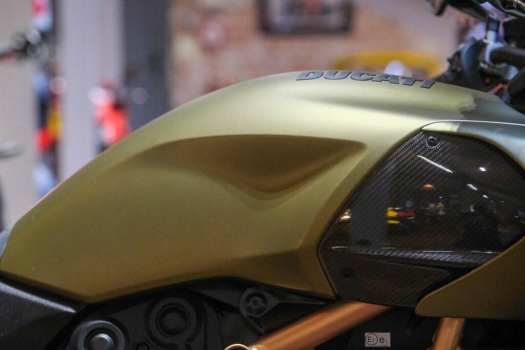 We are proud to offer for sale our 2021, one owner, road registered Ducati Lamborghini Diavel, this one being number #514 of the 630 produced world wide. The bodywork is finished in "Gea Green," a colour directly taken from the Sián FKP 37, while the frame, undertray and forged rims are adorned with "Electrum Gold."