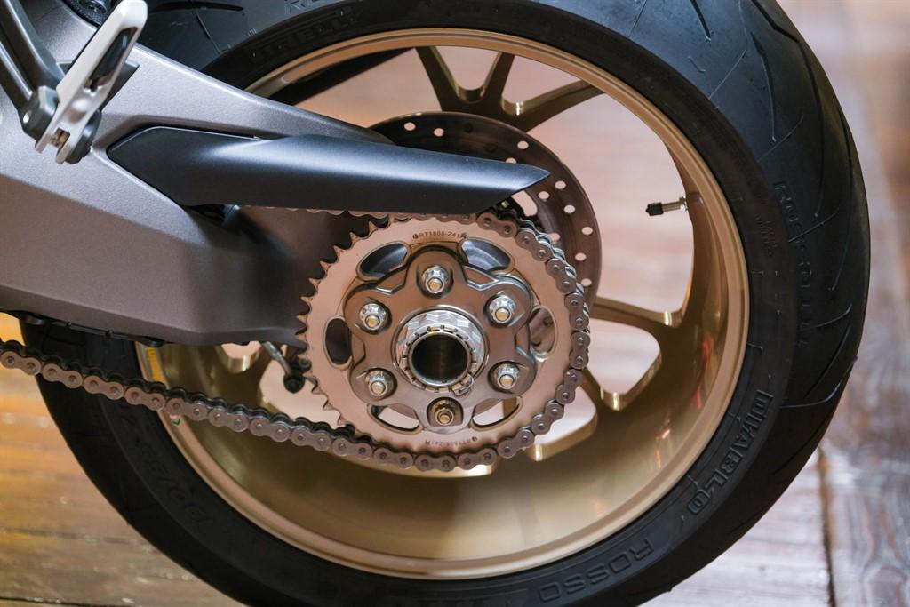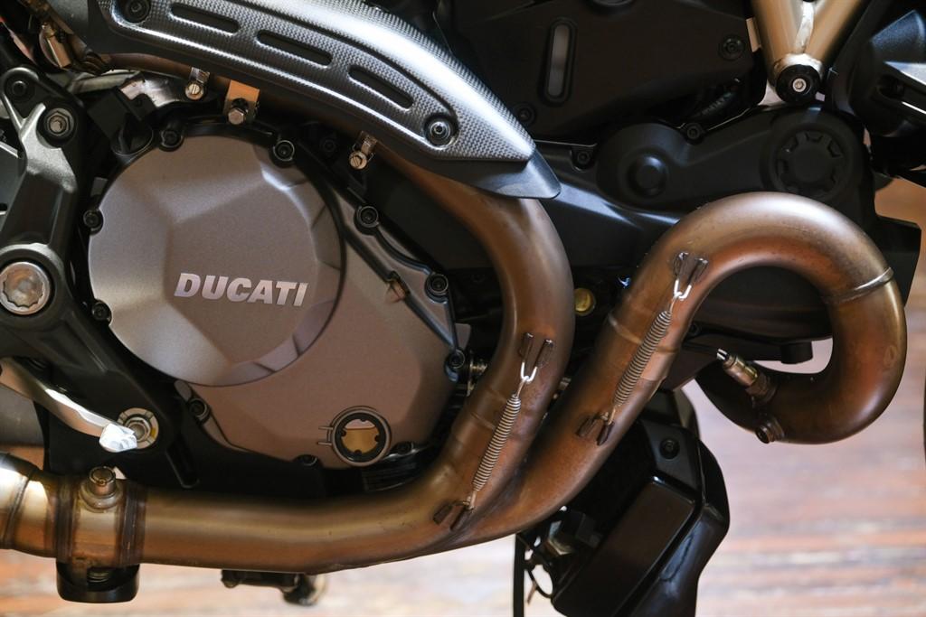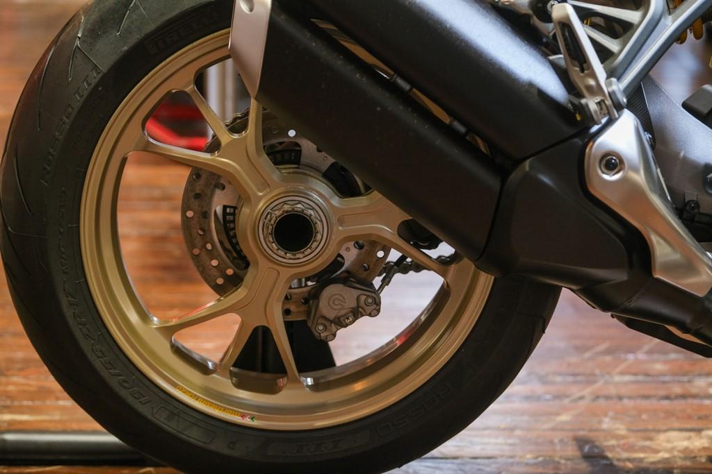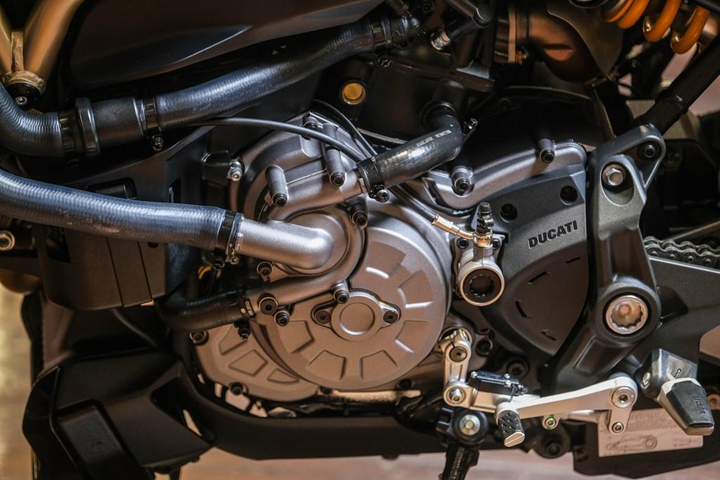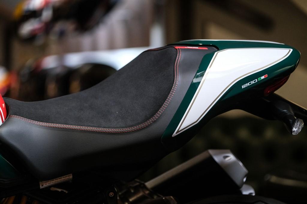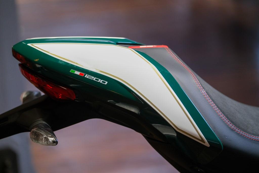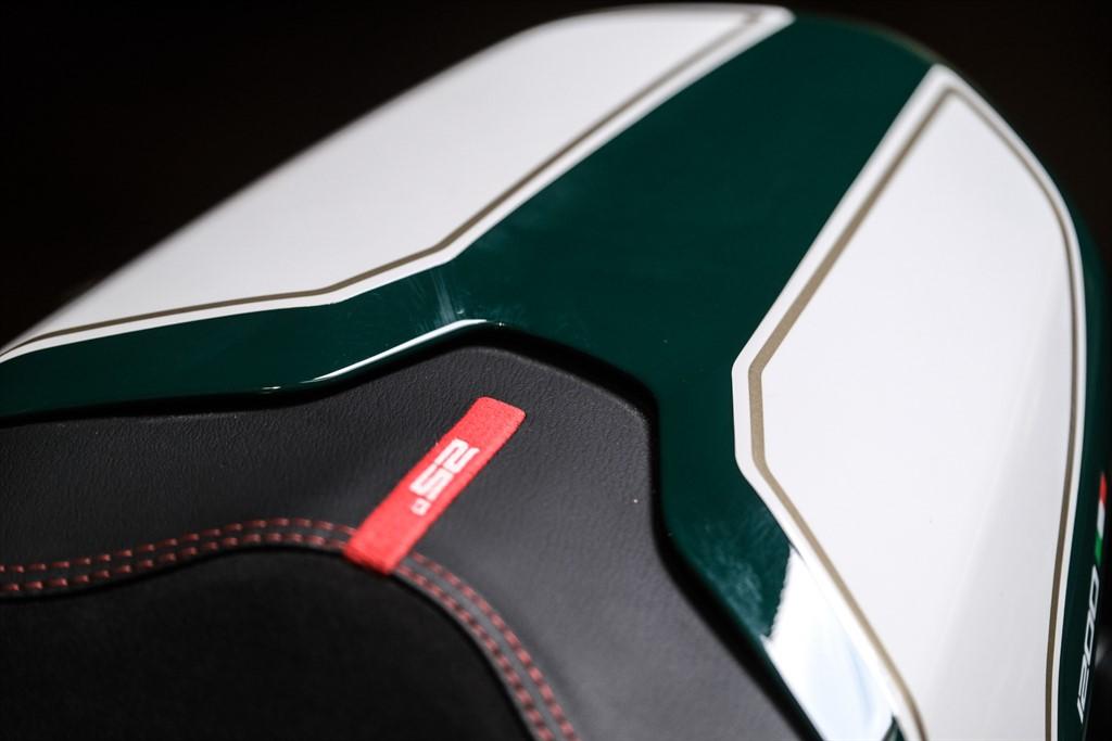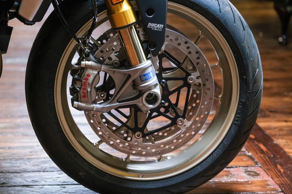 The headlight fairing, tank and passenger seat cover of the bike feature a special three-colour Italian flag livery inspired by the 2008 Monster S4RS Testastretta Tricolore. The line is also distinguished by a logo celebrating the bike's 25 years embroidered on the seat. It also boasts distinctive Marchesini forged rims with gold-coloured W spokes, a steel tube trellis frame and Öhlins fully adjustable suspension.