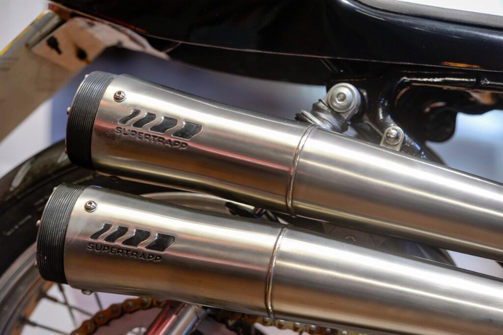 This stunning bike was created by local bike builder Mike Oakes using an original 2001 Harley Sportster 1200, he then found an American company that supplied Bull nosed fairings and set to work transforming the bike into its current reincarnation. Custom fuel tank and seat unit followed all finished in the traditional Wrecking Crew Orange, Black and White paint scheme. Suspension is Koni on the rear and Showa on the front along with 18" Morad wheels.