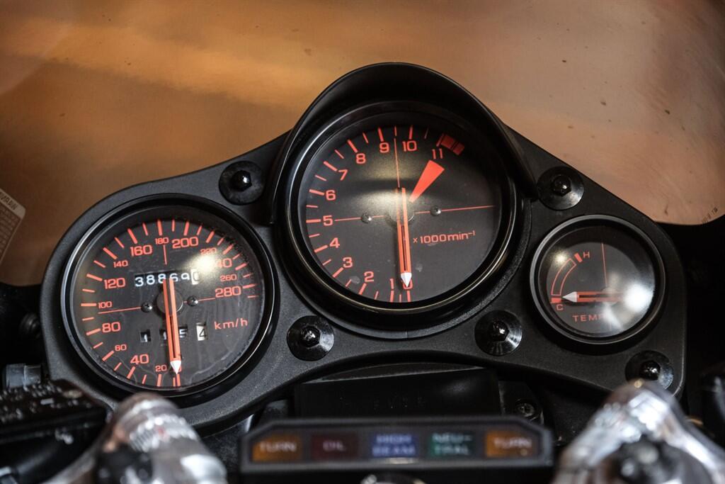 Here we have for sale our Honda VF1000RF. This 1985 example has covered 38,869 miles and is supplied in the iconic HRC colours, Fighting Red, Shasta White and Candy Aleutian Blue paint scheme. The bike was originally registered in Belgium in May 1995 and brought to the UK in September 2020 before being UK registered with an age related plate. It is supplied with two keys and a full documented due diligence report file containing all the details of the bike and photographs.
