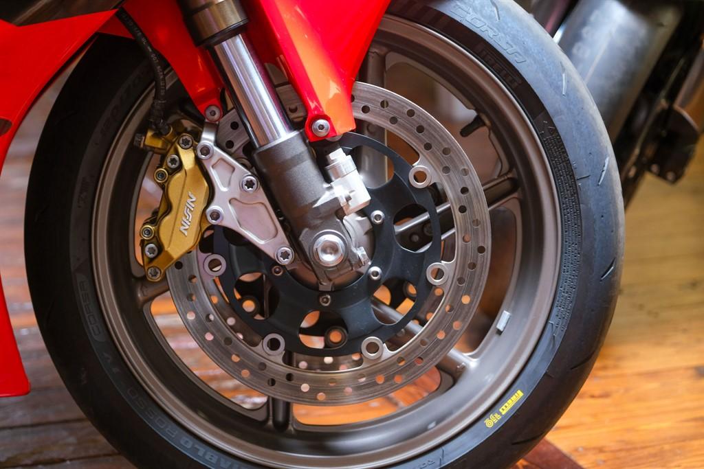The SP1 was Honda's answer to Ducati's V-twin domination of the World SuperBike Championship, simple: build a V-twin to beat a V-twin. Honda's racing arm HRC did exactly that and the resulting bike was the RC51, more commonly known in Europe as SP1. There's no getting away from it, the SP1 oozes quality. It's small, compact and perfectly formed with the usual Honda build quality. The SP1 is more than capable of delivering a thrilling ride, pegs are high and set back and the seat is shaped for instant knee-down cornering. While the power output is marginal compared to some big in-line four-cylinder bikes, there's plenty of torque and horsepower to be applied usefully thanks the waif-like chassis dimensions.