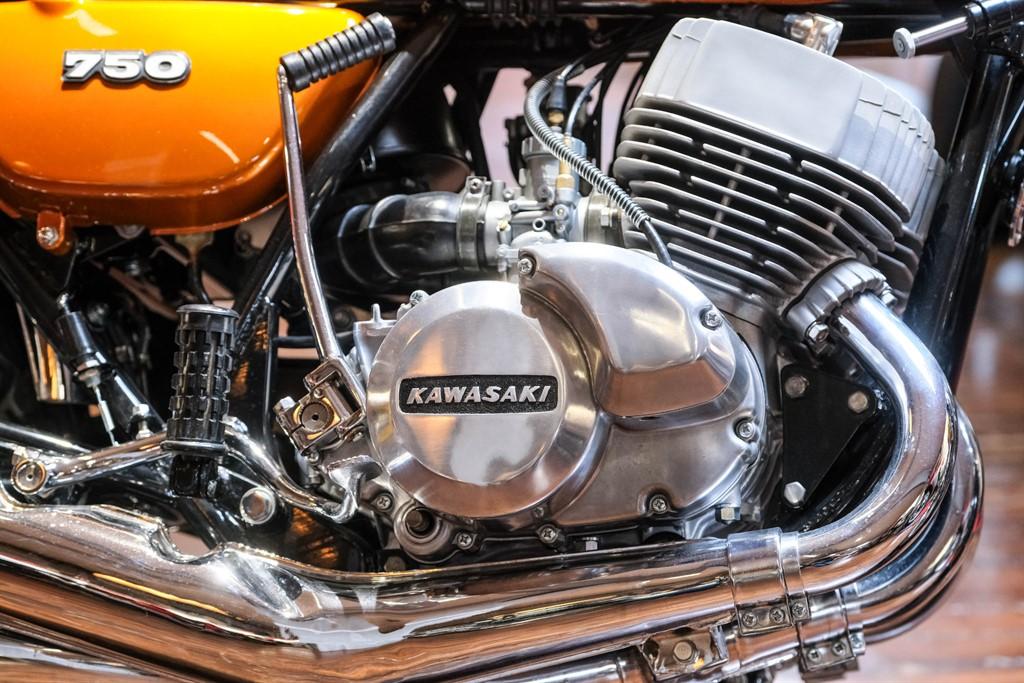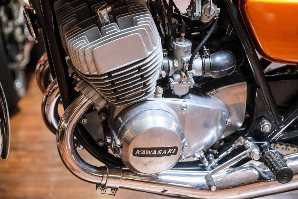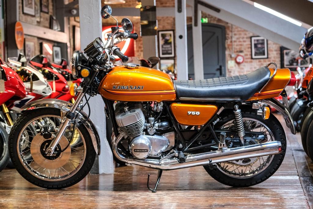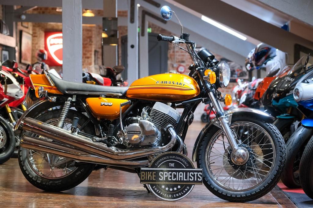 1972 This Kawasaki H2 750 Mach IV is offered to you for sale in Sheffield, South Yorkshire, finished in Gold this Kawasaki H2 750 Mach IV is one of the many rare and coveted bikes that motorbike dealer The Bike Specialists, Sheffield, South Yorkshire have available for sale.