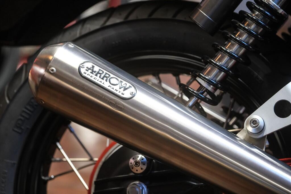 Our UK, 2 owner example has covered less than 900 miles and shows the number #361 on the headstock which shows it is one of just 1,000 bikes produced worldwide. It is supplied with 2 keys, hand books, a file bursting with magazine articles, brochures and receipts/paperwork charting the bikes history. The bike is also fitted with the upgraded seat and Arrow exhausts as well as the chrome tank leather strap. All of the bikes original parts are also included inc seat/exhausts etc...