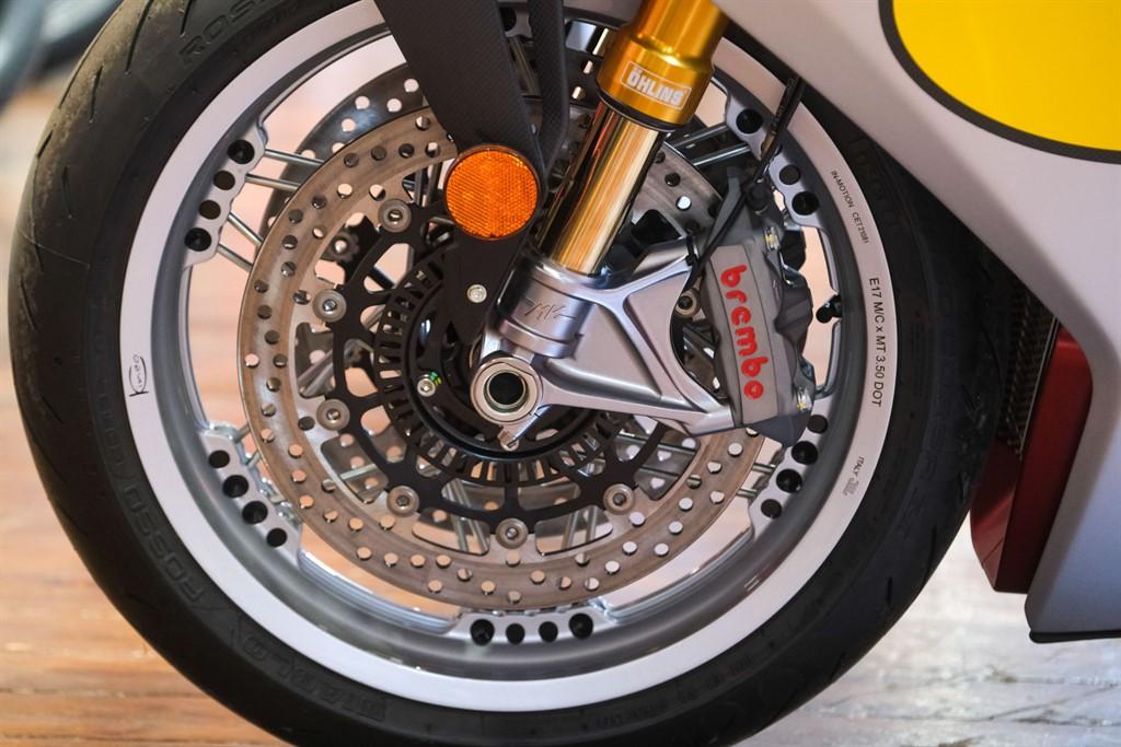 Our bike is a 2022 (22) registered motorcycle and has covered only 4 miles from new! It comes with the gorgeous black arrow 3 pipe exhaust fitted. Each Superveloce Ago is finished in Matt Fire Red, Matt SV Ago Magnum Silver, and Matt Ago Yellow, and features a retro-style windscreen, a 5.5-inch TFT dash, an Agostini-autographed fuel tank, and fully adjustable Öhlins suspension with a forged upper triple clamp. Our bike comes with both keys, USB Service record stick, Owners manual, The MV Crate of goodness which contains Pillion seat & Pegs, Fuel Cap, ECU, Bike cover, & Plaque.