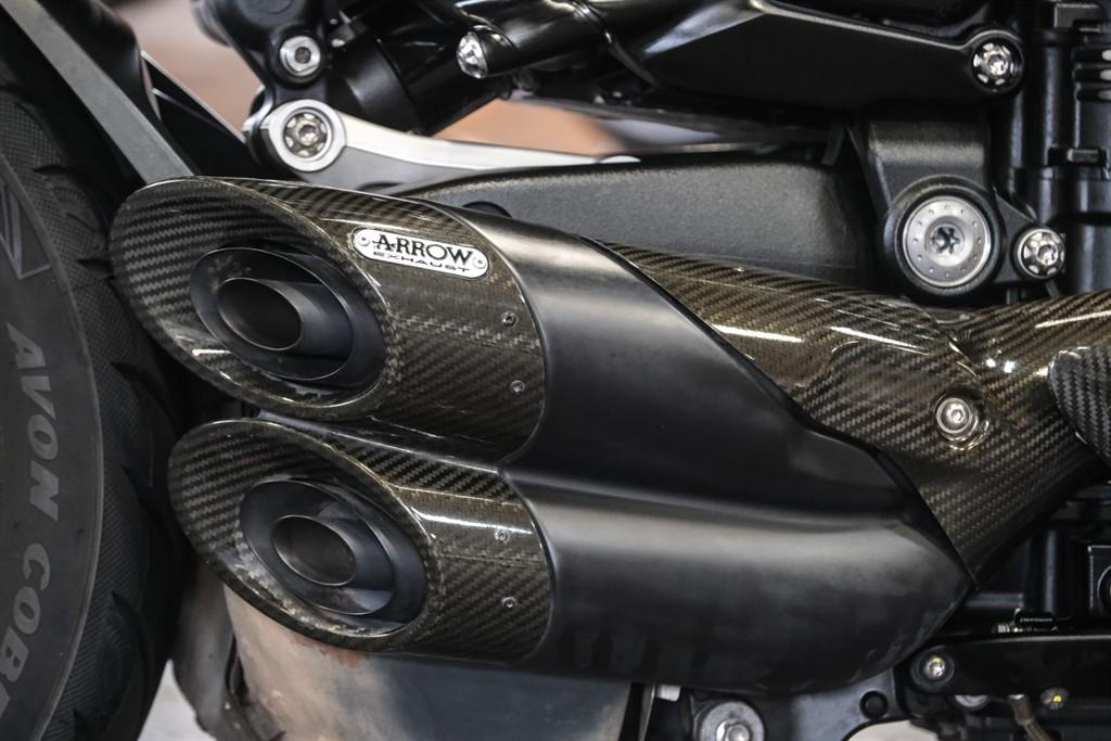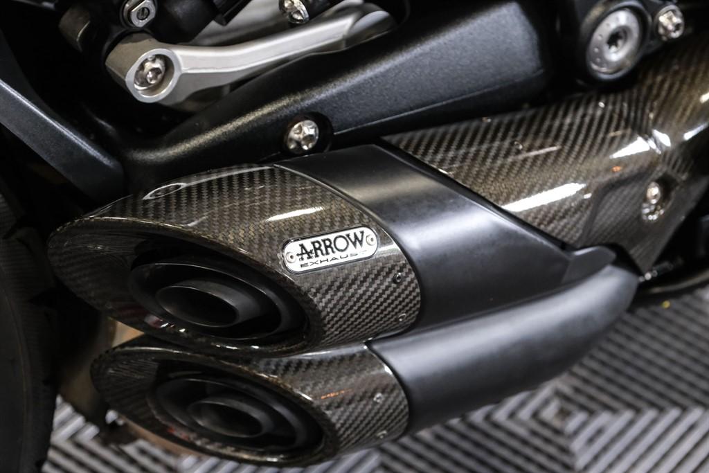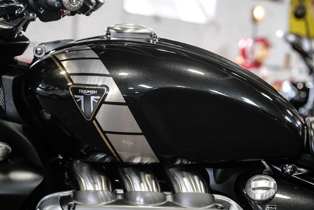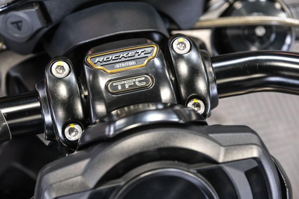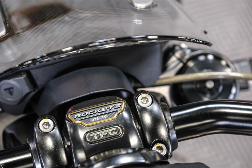The bike is a 2019 Rocket 3 TFC of which only 750 will ever be made, and every single bike’s unique premium TFC badging includes a numbered edition plaque. Ours is numbered 375 and has covered 4,501 miles and is supplied with full Triumph service history and an Arrow exhaust.