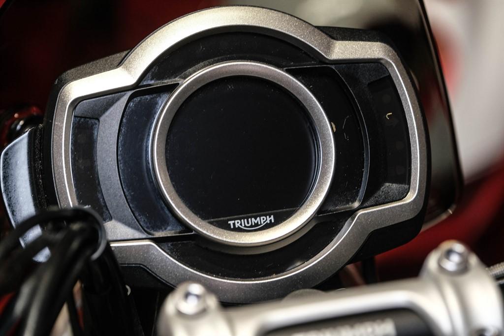 Supplied with the the standard Showa front and Ohlins rear suspension and also amongst standard specification the bike has the following: 1200cc twin engine (Euro 5 compliant) Brembo M50 brakes with optimised cornering, switchable ABS, Torque assist clutch, 6 riding modes (Road, Rain, Sport, Rider Configurable, Off-Road and Off-Road Pro) Traction Control, Ride-by-wire throttle with optimised cornering switchable traction control, Multi-functional instruments with LED lighting and the Keyless ignition system, single button cruise control, under seat USB charging and illuminated switches