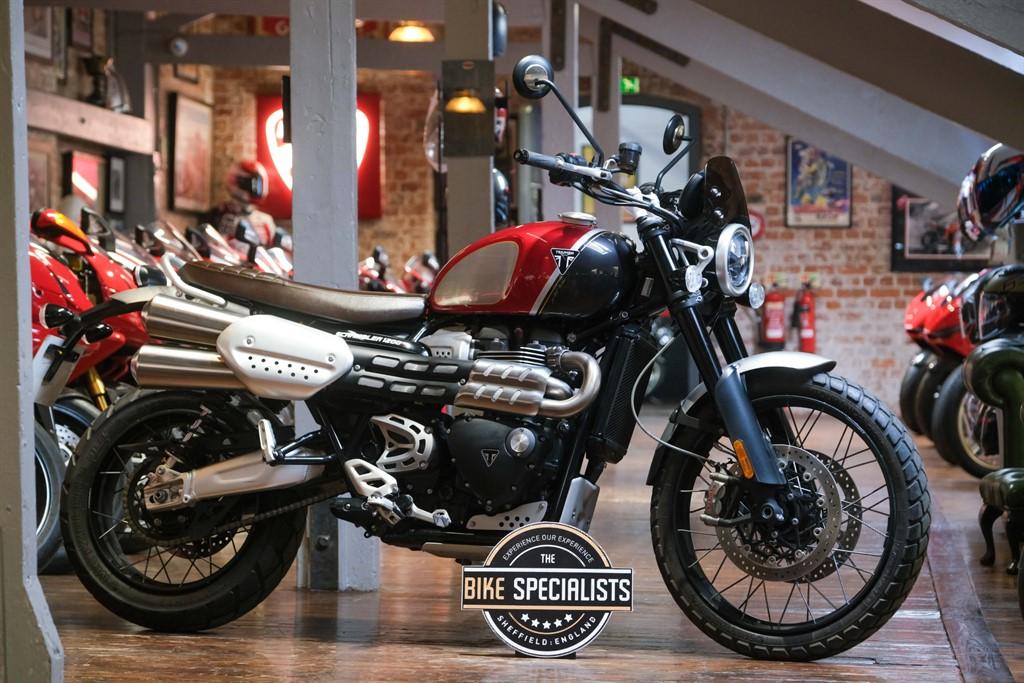 2021 (71) Triumph Scrambler 1200 1200 XC Modern Classics is offered to you for sale in Sheffield, South Yorkshire, finished in red this Triumph Scrambler 1200 1200 XC Modern Classics is one of the many rare and coveted bikes that motorbike dealer The Bike Specialists, Sheffield, South Yorkshire have available for sale.
