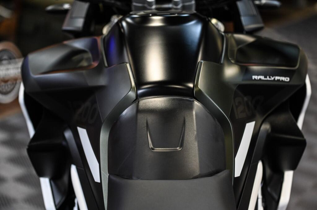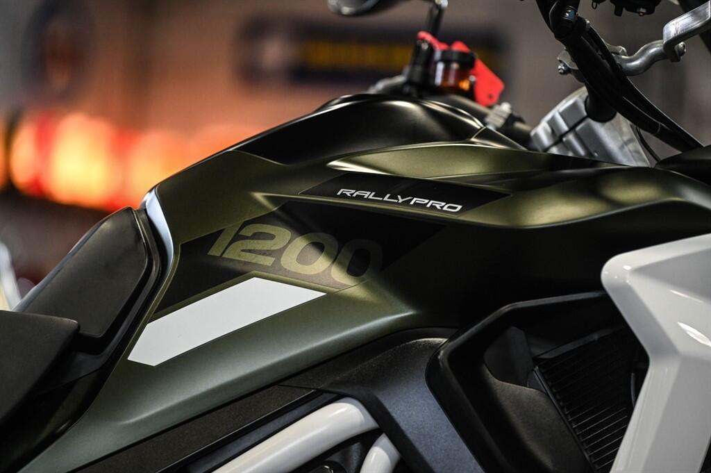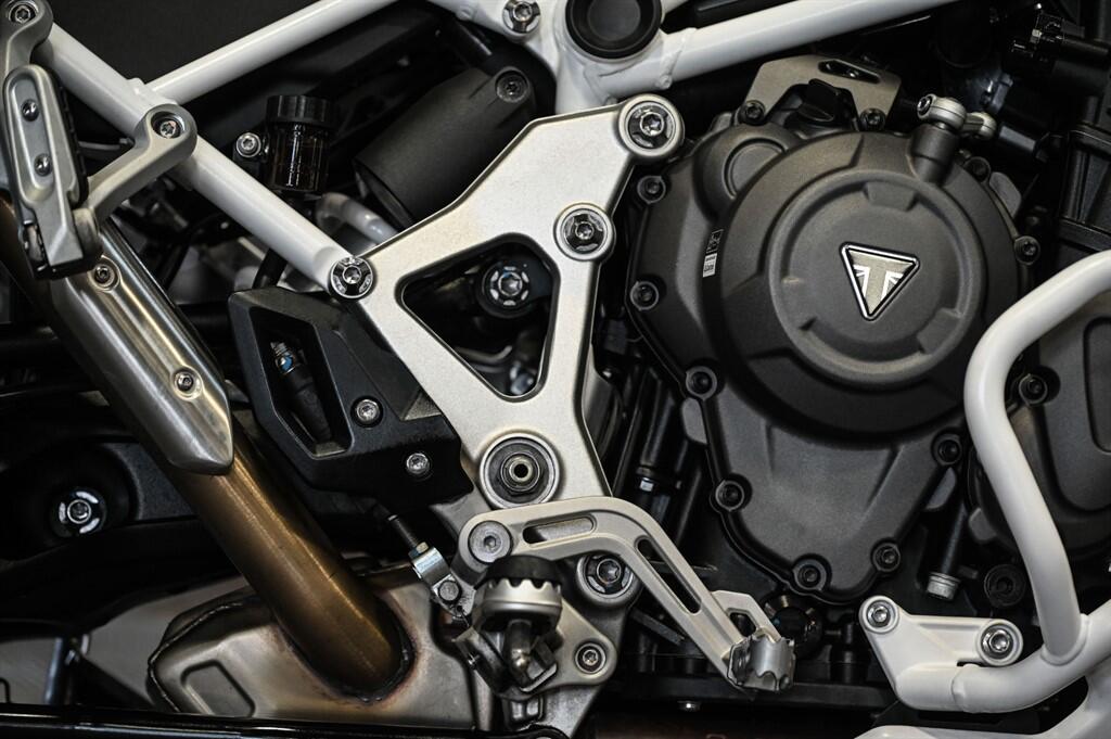 "The 2024 Triumph Tiger 1200 Rally Pro is a premium large-capacity adventure bike built to balance serious off-road capability with long-distance touring comfort, powered by a 1,160cc triple-cylinder engine producing around 150 PS and 130 Nm, paired with a smooth shaft drive and modern 6-speed gearbox. It features 21"/18" spoked tubeless wheels, high-travel semi-active Showa suspension with automatic preload and ride-height reduction at stops, Brembo Stylema brakes, a 20-litre tank, and a tall adjustable seat (around 875–895 mm). Packed with technology such as multiple riding modes, cornering ABS, traction control, quickshifter, cruise control, heated grips, and a large TFT display, it excels as a versatile all-rounder for road touring, gravel, and adventure riding. It’s ideal for riders wanting a powerful, refined, feature-rich adventure motorcycle that can confidently handle both long highway journeys and rugged terrain".
