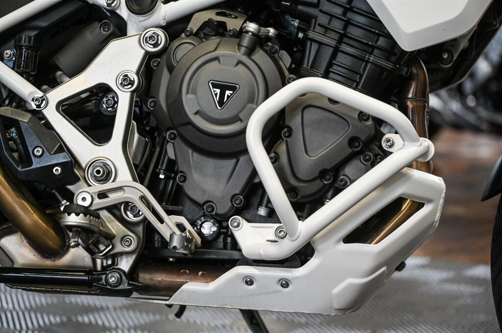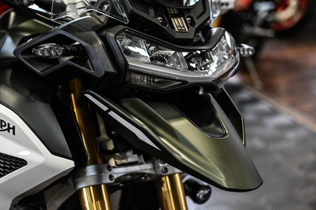 Here at The Bike Specialists we have for sale this stunning example of the Triumph Tiger 1200 Rally Pro. It is in superb condition having only covered 5,433 miles and is supplied with the original Triumph wallet that includes the owners manual and service book that shows the last service being carried out on the 10.04.25 @ 3,4865 miles, The bike will also benefit from having a service prior to sale. The bike is supplied with an LeoVince end can, Genuine Triumph Panniers, lower engine protection, Fog lights, Barkbusters Hand Guards and an upgraded WRS screen. All in all a great package for someone who is wanting their first experience of the joys of touring.
